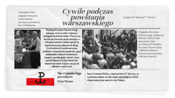 Ludność cywilna podczas powstania warszawskiego nie mogła narzekać na brak dostępu do prasy. Gazety podkreślały wyjątkowość pierwszych powodzeń zrywu, mobilizowały do godnego znoszenia niedogodności. Ideowe artykuły zespalały cywilów z żołnierzami, uświadamiały społeczeństwu rangę powstania. Pisma publikowały listy zaginionych, prezentowały wydarzenia także z zagranicy. Wszelkie pouczenia przyjmowane były niemal całkowicie bezkrytycznie. Liczba wydawanych wówczas tytułów, choć niektóre doczekały się zaledwie kilku numerów, znacząco przekraczała setkę. Oprócz oficjalnych organów Delegatury Rządu ("Rzeczpospolita Polska") i Armii Krajowej ("Biuletyn Informacyjny") pojawiały się również pisma przeznaczone dla dzieci i młodzieży, czego przykładem są "Dzieci Mokotowa" redagowane przez najmłodszych warszawiaków.