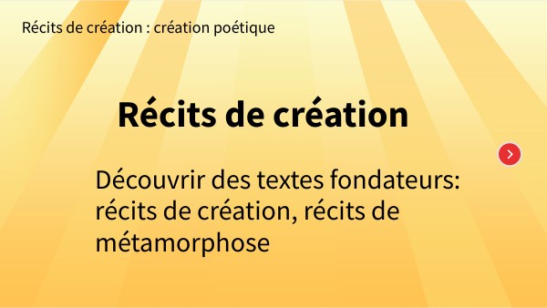 Découvrir des textes fondateurs: récits de création, récits de métamorphose