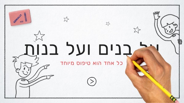 כל פעם שאנחנו מתייחסים למגדר וזה נשמע לנו בסדר, צריך לבדוק איך זה היה נשמע בקטגוריה אחרת. למשל, אם אנחנו מזמינים את הבנות לשבת במעגל ואת הבנים לצאת לשחק בכדור, צריך לחשוב איך זה היה נשמע אם היינו אומרים: כל האשכנזים לשבת במעגל וכל המזרחיים לצאת לשחק בכדור. ואם זה נשמע רע בקטגוריה אחרת, אפשר להבין שזה רע גם בקטגוריה של מגדר ולהימנע מזה.
