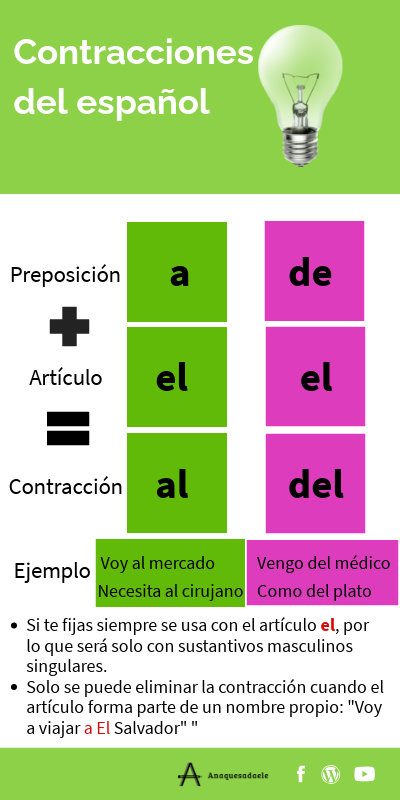 - Solo se puede eliminar la contracción cuando el artículo forma parte de un nombre propio: "Voy a viajar a El Salvador" "