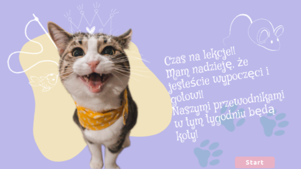 Czas na lekcje!!Mam nadzieję, że jesteście wypoczęci i gotowi! Naszymi przewodnikami w tym tygodniu będą koty!