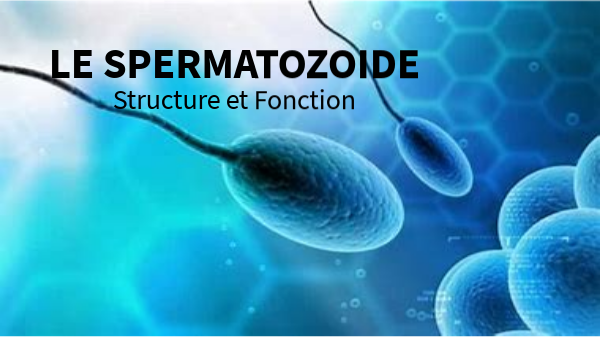 Le spermatozoïde est une cellule haploïde trés différencier et spécifique mais aussi tres active métaboliquement. Il est composé de 3 parties: La Tête a une forme ovalaire en aspect de flamme de bougie d'environ 4 à 7 µm Le flagelle qui fait environ 10 fois la tête Le cou separe ces deux parties et est postérieur et arrondie
