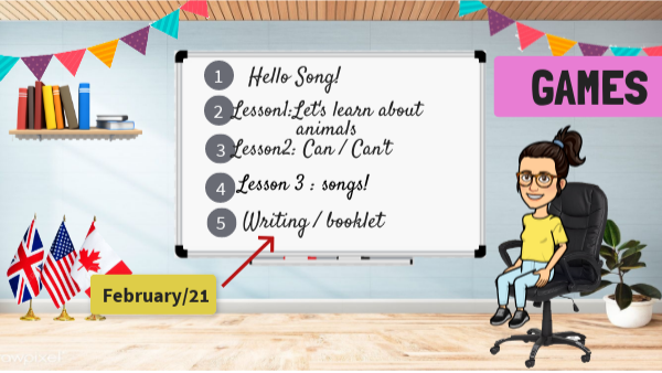 Hello boys and girls! En esta actividad toca Writing! escribir...Let's go! This is a... Esto es un/a... y pondremos su nombre. It can... puede... y completaremos con lo que puede hacer: fly, climb, run, swim or jump... It can't...no puede...y escribiremos qué no puede hacer. Remember!!! se escribe diferente de cómo se pronuncia! consulta las hojas de tu carpeta para comprobar! Good luck!