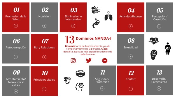 Dominio: Área de funcionamiento y/o de comportamiento de la persona. Clase: identifica aspectos más específicos dentro de cada dominio.