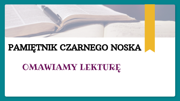 W zeszycie z języka polskiego napisz pytania oraz ułóż i zapisz odpowiedzi (pełne zdania). 1) Kto jest narratorem w książce pt. ,,Pamiętnik Czarnego Noska"? Podpowiedź: Narrator to osoba/postać opowiadająca o wydarzeniach przedstawionych w książce. 2) Kim jest Czarny Nosek?