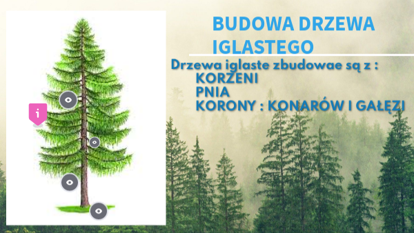DRZEWA IGLASTE NIE MAJĄ LIŚCI. NA ICH GAŁĘZIACG ROSNĄ IGŁY I SYSZKI