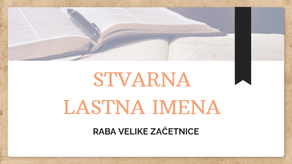 velika začetnica: začetek povedi, lastno ime, lastno ime knjige mala začetnica: občno ime (knjiga)