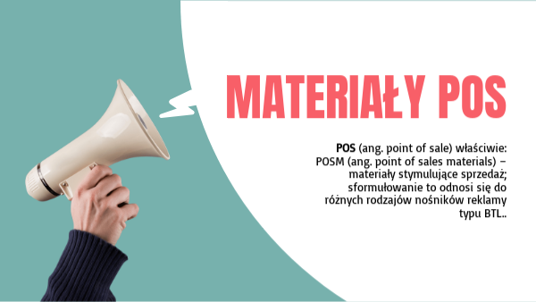 - Według polskiej terminologii marketingowej materiałami POS nazywamy wszystkie materiały wspierające sprzedaż i stanowiące jednocześnie nośniki reklamy typu BTL (ang. below the line). Reklamą BTL nazywa się wszystkie materiały i działania reklamowe, które realizowane są poza środkami masowego przekazu i które ukierunkowane są bezpośrednio na klienta detalicznego. Materiały POS nierzadko określane są również skrótem: POSM (ang. point of sale marketing) lub POP (ang. point of purchase).