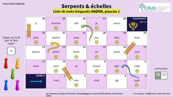 Jeu élaboré par Suzanne Chénard, orthopédagogue clinicienne et fondatrice, directrice de CIRAS
