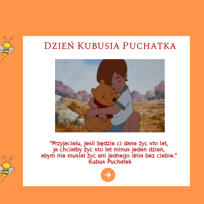 "Przyjacielu, jeśli będzie ci dane żyć sto lat, ja chciałby żyć sto lat minus jeden dzień, abym nie musiał żyć ani jednego dnia bez ciebie." Kubuś Puchatek