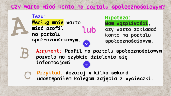 Teza: Według mnie warto mieć profil na portalu społecznościowym.