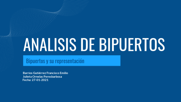 Los circuitos y redes eléctricas se pueden analizar mediante la técnica de bipuertos cuidando lasrestricciones que lo definen. Los bipuertos permiten caracterizar una red eléctrica a través de sus parámetros, así mismo, los diversos circuitos equivalentes y formas de conexión que se derivan de los bipuertos facilitan grandemente en análisis de los circuitos eléctricos. Una gran variedad de aplicaciones utiliza esta técnica para su análisis y diseño, por mencionar algunas, el transformador, filtros, circuitos resonantes, líneas de transmisión, y otras de carácter más específico.