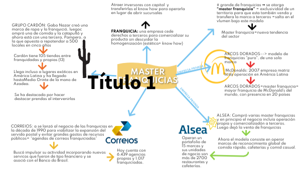 # grande de franquicias → se otorga “master franquicia” = exclusividad de un territorio para que esta también venda y transfiera la marca a terceros =salto en el vlumen bajo este modelo