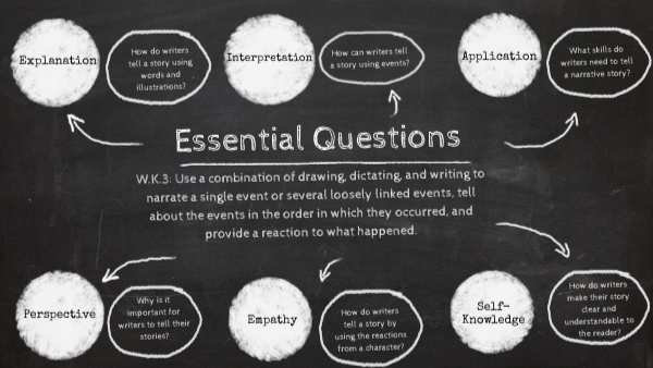 W.K.3: Use a combination of drawing, dictating, and writing to narrate a single event or several loosely linked events, tell about the events in the order in which they occurred, and provide a reaction to what happened.