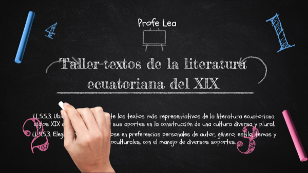 LL.5.5.3. Ubicar cronológicamente los textos más representativos de la literatura ecuatoriana: siglos XIX a XXI, y establecer sus aportes en la construcción de una cultura diversa y plural. LL.4.5.3. Elegir lecturas basándose en preferencias personales de autor, género, estilo, temas y contextos socioculturales, con el manejo de diversos soportes.