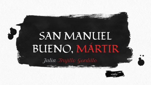 San Manuel Bueno, Martir, fue una obra publicada en 1931 por Miguel de Unamuno (Bilbao, 1864 - Salamanca, 1936), el cual fue un escritor y filósofo español perteneciente a la generación del 98. Escribía novela, ensayo, teatro y poesía. Otras de sus obras más importantes son: ``Niebla´´, ``Abel Sánchez´´, ``Vida de Don Quijote y Sancho'' y ``La tía Tula´´.