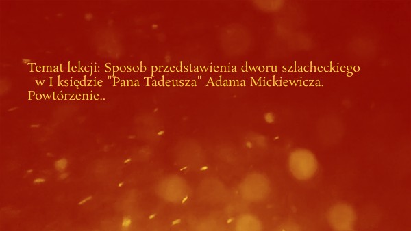 Temat lekcji: Sposob przedstawienia dworu szlacheckiego w I księdzie "Pana Tadeusza" Adama Mickiewicza. Powtórzenie..