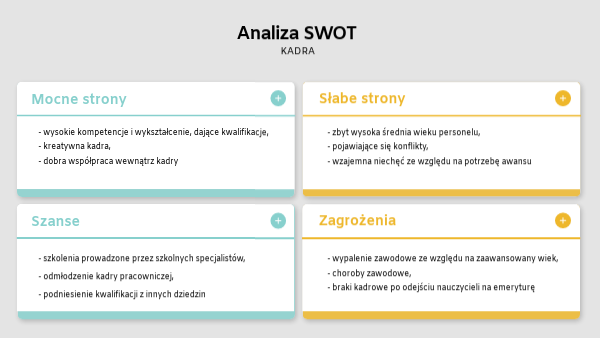 - wysokie kompetencje i wykształcenie, dające kwalifikacje, - kreatywna kadra, - dobra współpraca wewnątrz kadry