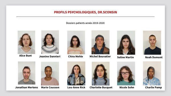 Début thérapie : 12 avril 2018La patiente ne mange plus, se renferme sur elle-même, distante de sa famille. Diagnostic présumé : dépression, mais soupçon d'autre chose à creuser... 17 décembre 2018 : efforts importants de sa part, famille ne semble pas comprendre..., déclencheur de la dépression sous entendu ???? 5 janvier 2019 : dernière séance, amélioration ? ordonance de somnifère, volonté d'arrêter regrettée !! 20 février 2020 : nouvelle consultation, état se dégrade, ne sort plus, reste enfermée, inquiétude de la mère 2 novembre 2020 : état inquiétant, problème garçon ??, déclencheur ?