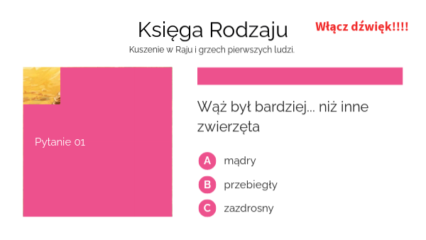 «Owoce z drzew tego ogrodu jeść możemy, Tylko o owocach z drzewa, które jest w środku ogrodu, Bóg powiedział: Nie wolno wam jeść z niego, a nawet go dotykać, abyście nie pomarli».