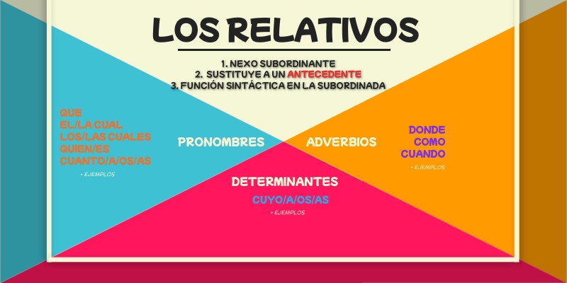 1. NEXO SUBORDINANTE2. SUSTITUYE A UN ANTECEDENTE 3. FUNCIÓN SINTÁCTICA EN LA SUBORDINADA