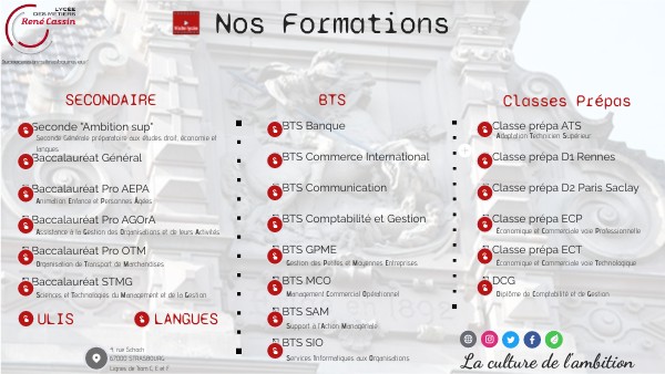 ► Seconde "Ambition sup" ► Baccalauréat Général ► Baccalauréat Pro AEPA ► Baccalauréat Pro AGOrA► Baccalauréat Pro OTM► Baccalauréat STMG