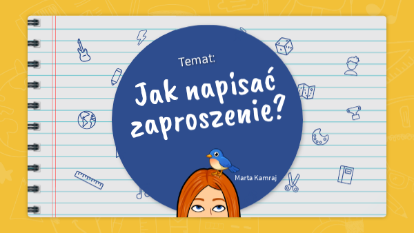 Cel:umiem napisać zaproszenie. Kryteria: wiem, co to jest zaproszenie;stosuję regułę pięciu palców; znam zwroty i słowa typowe dla tej formy wypowiedzi.