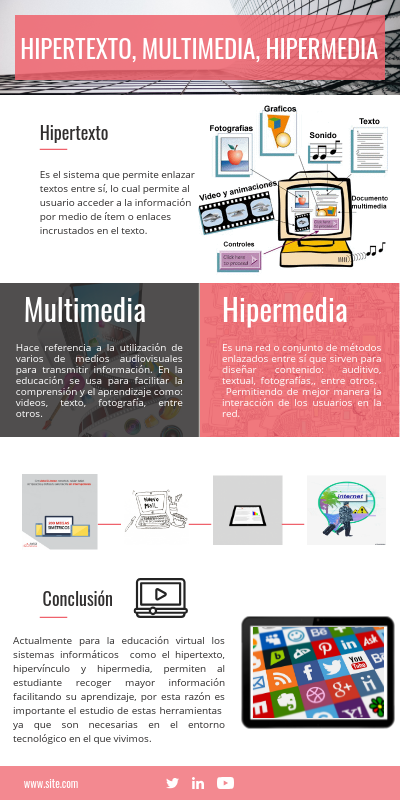 Actualmente para la educación virtual los sistemas informáticos como el hipertexto, hipervínculo y hipermedia, permiten al estudiante recoger mayor información facilitando su aprendizaje, por esta razón es importante el estudio de estas herramientas ya que son necesarias en el entorno tecnológico en el que vivimos.