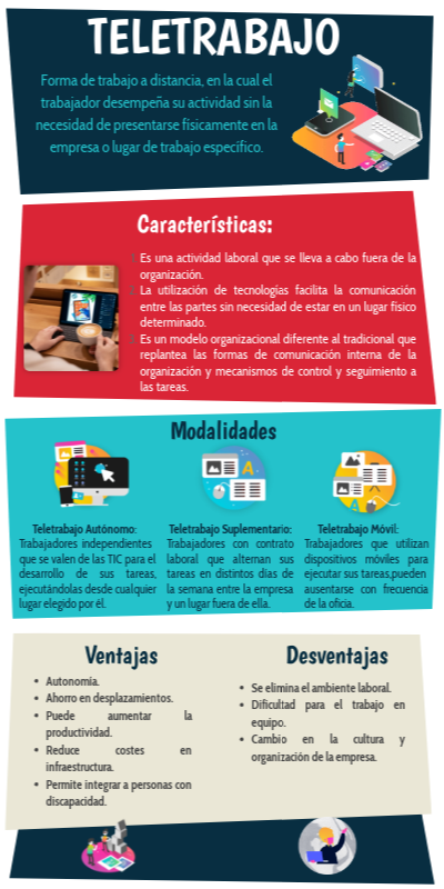 Teletrabajo Autónomo: Trabajadores independientes que se valen de las TIC para el desarrollo de sus tareas, ejecutándolas desde cualquier lugar elegido por él.