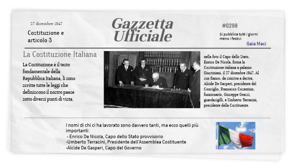 I nomi di chi ci ha lavorato sono davvero tanti, ma ecco quelli più importanti: - Enrico De Nicola, Capo dello Stato provvisorio -Umberto Terracini, Presidente dell’Assemblea Costituente -Alcide De Gasperi, Capo del Governo