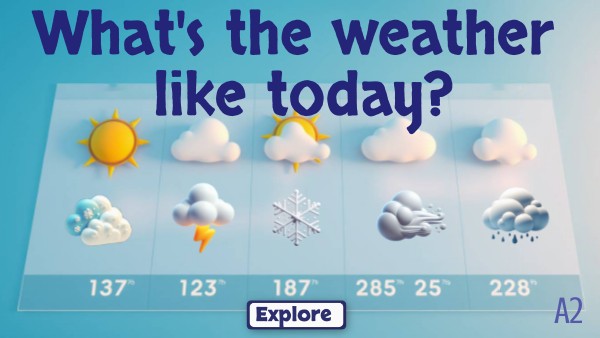 This is another speaking activity connected with weather vocabulary, however, this time, ss get to practice the common weather for each season of the year. The images of the seasons change, but the ss can see the weather symbols to help them talk about each season. T can use it as a writing prompt or simply as a speaking activity.
