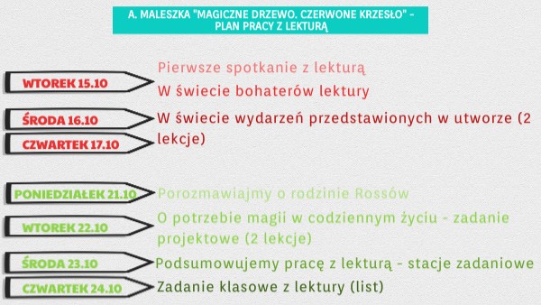 A. Maleszka "Magiczne drzewo. czerwone krzesło" - Plan pracy z lekturą