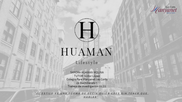 Huaman es una marca creada en España y de alcance internacional. Ofrece un estilo de ropa generalmente juvenil, inspirado en distintas modas urbanas, tanto anteriores como actuales. Creando así un contraste adaptado, a lo que parece que serán las modas posteriores y dando un giro a la importancia de nuestro aspecto, ofreciendo la mayor comodidad posible.De esta manera, pretendemos evitar los prejuicios aparentes que ha ido creando la ropa con el paso de los años y reducir sus supuestos precios, para estar al alcance de un grupo mayor de población, a nivel mundial.
