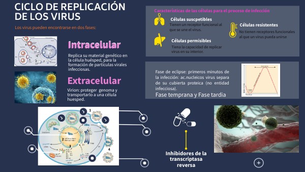 Replica su material genético en la célula huésped, para la formación de partículas virales infecciosas.