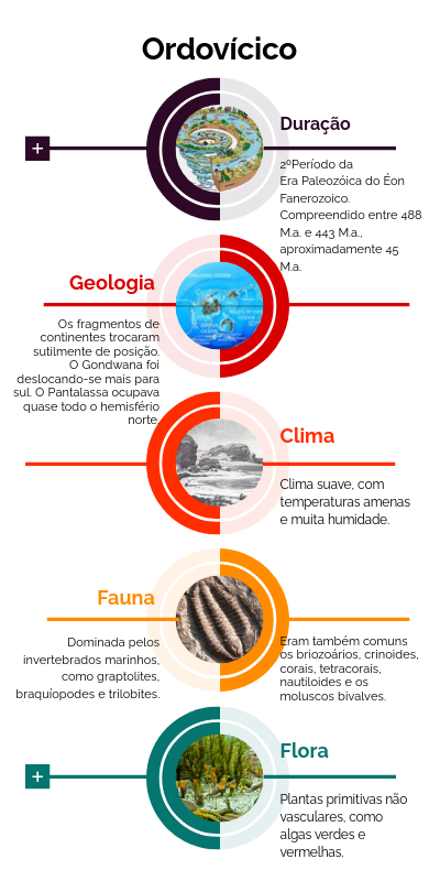 2ºPeríodo daEra Paleozóica do Éon Fanerozoico. Compreendido entre 488 M.a. e 443 M.a., aproximadamente 45 M.a.