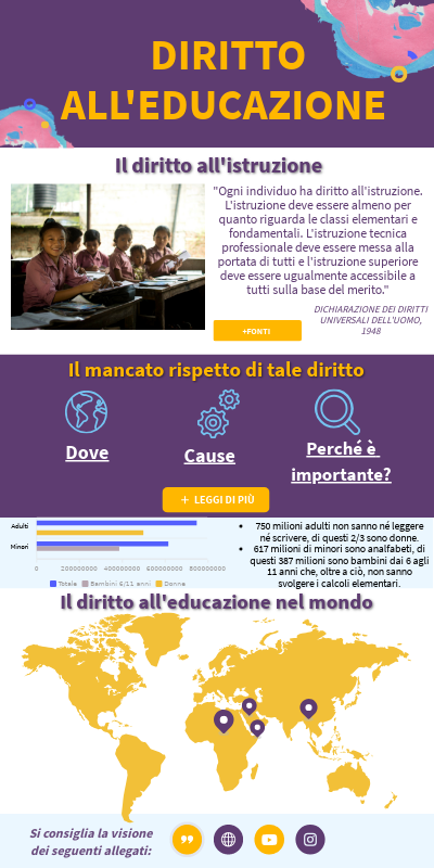 "Ogni individuo ha diritto all'istruzione. L'istruzione deve essere almeno per quanto riguarda le classi elementari e fondamentali. L'istruzione tecnica professionale deve essere messa alla portata di tutti e l'istruzione superiore deve essere ugualmente accessibile a tutti sulla base del merito."