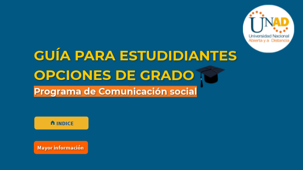 La universidad Nacional Abierta y a Distancia UNAD ofrece diferentes opciones de grado al estudiante, con base al reglamento estudiantil capítulo 8. Con el fin de profundizar, complementar e integrar las competencias disciplinares adquiridas durante su formación académica.