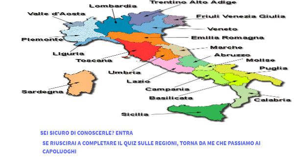 SE RIUSCIRAI A COMPLETARE IL QUIZ SULLE REGIONI, TORNA DA ME CHE PASSIAMO AI CAPOLUOGHI