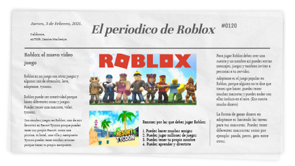 Razones por las que debes jugar Roblox: 1. Puedes hacer muchos amigos 2. Puedes jugar millones de juegos 3. Puedes tener tu propio nombre 4. Puedes aprender y divertirte