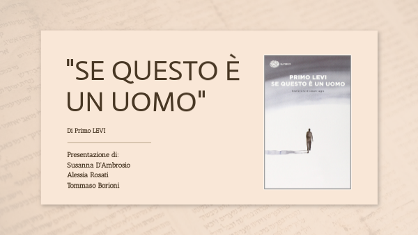 "Se questo è un uomo" è il capolavoro di Primo Levi scritto, come ha affermato l’autore stesso nella prefazione del libro, per soddisfare “il bisogno di raccontare agli altri, di fare gli altri partecipi” dell'esperienza della sua deportazione nel Lager di Auschwitz in quanto ebreo. Primo Levi scrive questo libro di getto nel 1946, subito dopo essere rientrato a Torino nell’ottobre del 1945, sopravvissuto alla prigionia, come "fotografia" di quella realtà, obbedendo all’esigenza di far conoscere a tutti l’esperienza atroce dell’internamento. E’ un testo autobiografico che viene scritto sull’onda dei ricordi della terribile esperienza vissuta. Levi mette in luce come in un contesto di simile crudeltà, ogni prigioniero sia ferocemente solo e veda dissolversi i principi della convivenza civile e delle regole morali. La narrazione segue in ordine cronologico le tappe cruciali dell’esperienza del Lager a partire dal febbraio 1944 al gennaio 1945. L’ordine con cui sono stati scritti i 17 capitoli, però, non è stato dettato da una successione logica ma piuttosto da una necessità “di urgenza".