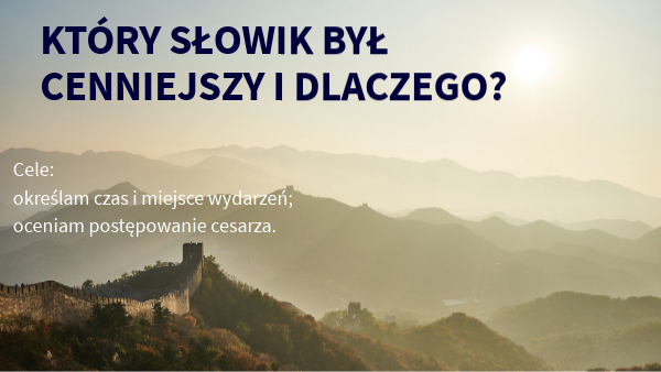 Cele: określam czas i miejsce wydarzeń; oceniam postępowanie cesarza.
