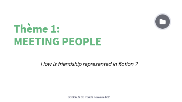 To conclude, these documents show us that in fictions, in general, friendship is represented to us as a strong bond between two people, who stick up for each other and who can act as a couple, like Jack and Algrnon, Joey and Chandler or Thelma and Louise. It is important to know that representing a friendship as such was new at the time. Moreover we can see that friendship is represented stronger than love, mainly through the poem "Love and Friendship" by Emilie Bronte. This theme "meeting people" allows to see firsts representation of friendship by authors in their works, what type of bond unite them. This is an alliance between two people often very different, who find in each other what is lacking in each other. It allows to questions us about the importance of a strong friendship. Lastly friendship is still found and represented everywhere in fictions, between many characters, at all times. Like Sherlock Holmes and Watson, Frodo and Samwise in "The Lord Of The Ring" or also Woody and Buzz in " Toys Story" So we can also ask ourselves if friendship is the only bond that can unite two characters ?