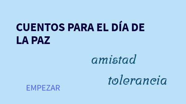 El señor Guerra vivía en una colina donde siempre llovía y tronaba. Tenía una mansión que se caía a trozos, y pocas veces salía de casa, si no era para gritarle al tendero que le llevaba la comida. Pero un día, se alquiló la casita de al lado. Y allí se fue a vivir la señora Paz. Una vez leído contestaremos las preguntas: -¿Por qué señora paz se mudó a la casa? -¿Por qué discutían señor guerra y señora paz? - ¿Cómo lo acabaron solucionando? - ¿Que personaje te gusta más? ¿por qué?