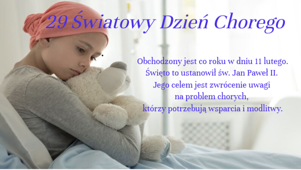 Dzień chorych, obchodzony 11 lutego, ustanowiony został przez papieża św. Jana Pawła II w dniu 13 maja 1992 roku – w 75 rocznicę objawień fatimskich. Celem obchodów jest objęcie modlitwą wszystkich cierpiących, duchowo i fizycznie,oraz zwrócenie uwagi świata na ich potrzeby.Uroczystości kościelne mają miejsce w jednym z sanktuariów maryjnych na świecie. 7 lat wcześniej, 11 lutego w 1984 roku papież napisał list apostolski „Salvifici Doloris” o chrześcijańskim sensie ludzkiego cierpienia.