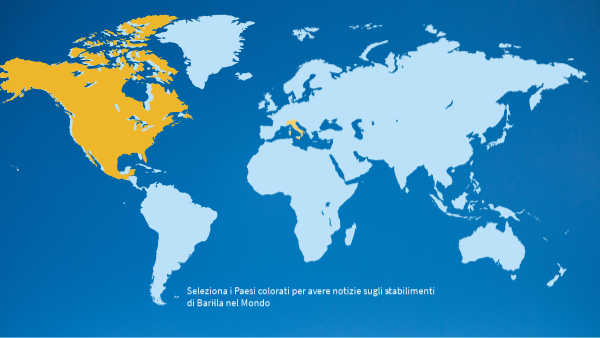 Seleziona i Paesi colorati per avere notizie sugli stabilimenti di Barilla nel Mondo