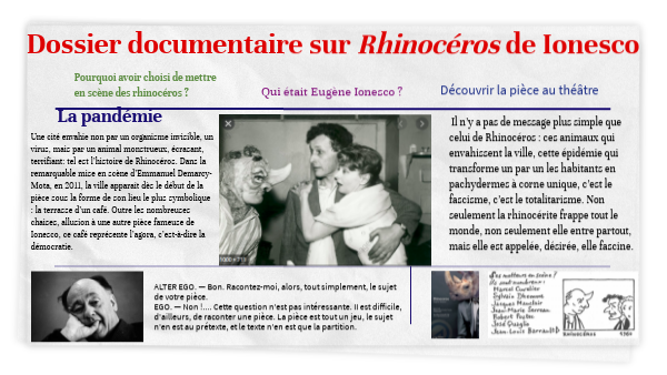 Rhinocéros de Ionesco, Ressources complémentaires - niveau 3ème Laïla Methnani