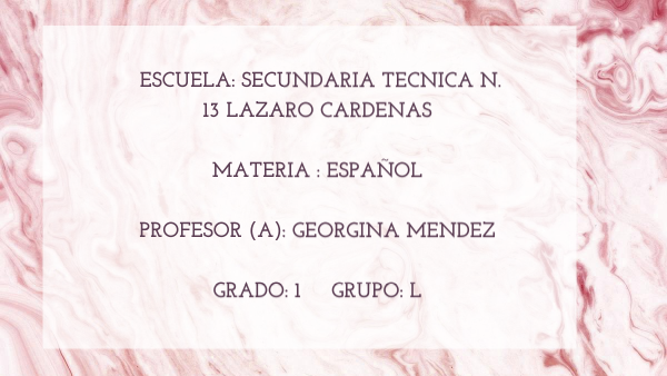 ESCUELA: SECUNDARIA TECNICA N. 13 LAZARO CARDENAS MATERIA : ESPAÑOL PROFESOR (A): GEORGINA MENDEZ GRADO: 1 GRUPO: L