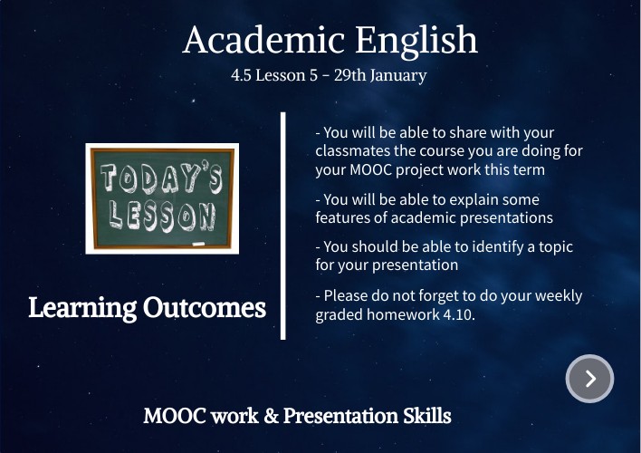 - You will be able to share with your classmates the course you are doing for your MOOC project work this term