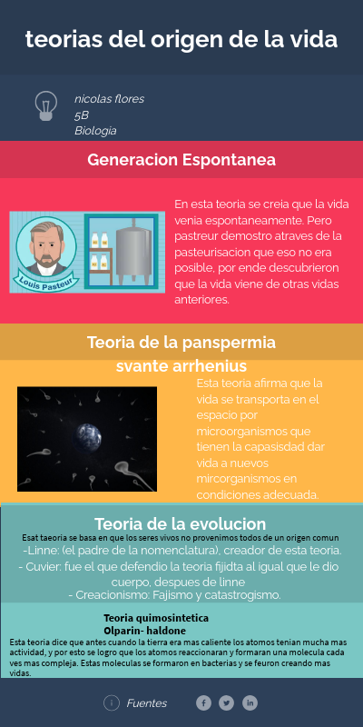 En esta teoria se creia que la vida venia espontaneamente. Pero pastreur demostro atraves de la pasteurisacion que eso no era posible, por ende descubrieron que la vida viene de otras vidas anteriores.