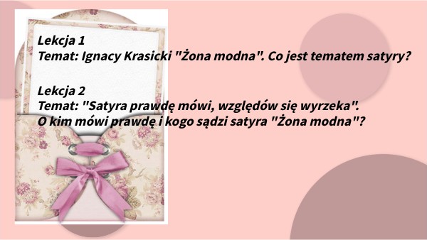 Lekcja 1Temat: Ignacy Krasicki "Żona modna". Co jest tematem satyry?